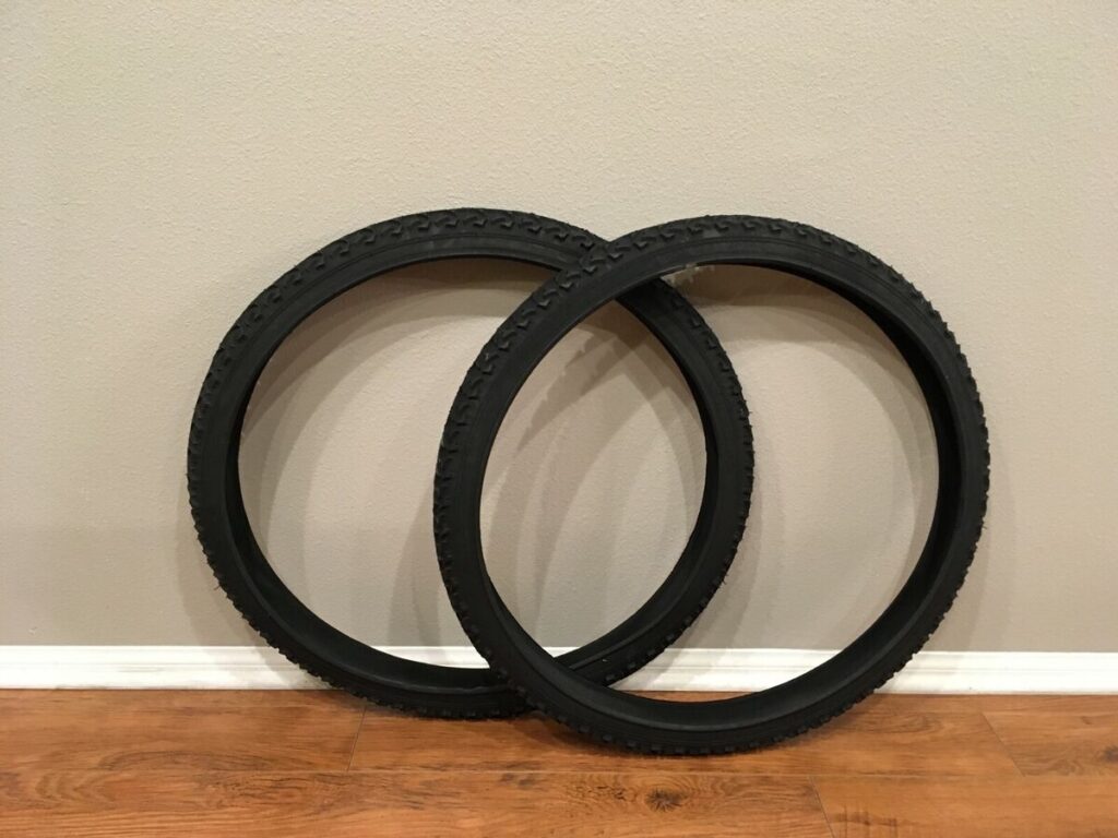 The British system uses inches to denote the diameter of the tire. For example, a common mountain bike tire size would be written as 26 x 2.2, where the first number (26) represents the diameter of the tire in inches, and the second number (2.2) represents the width of the tire, also in inches.