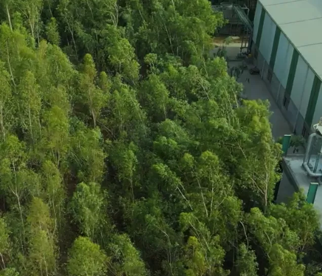Over 3,500 eucalyptus trees aid in wastewater absorption, enhancing natural treatment and supporting eco-friendly environmental management.